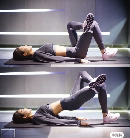 先将一腿弯曲平放于另一腿上,像是做进阶版的臀桥,臀部用力向上抬起,这样增加支撑腿的负重力,单边用力臀部会更有感,20次为一组,共做2组。