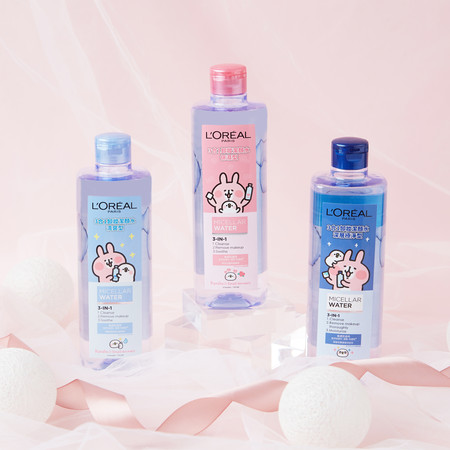 除了Etude House大打卡通角色牌卖萌,全球热销、美妆版网友都大推的巴黎莱雅洁颜卸妆水系列也找来超人气插画家卡娜赫拉,联名推出“P助与粉红兔兔限定版”。