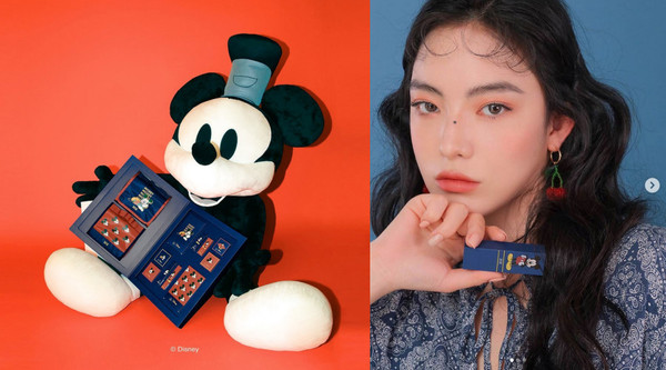3CE也跟迪士尼联名,以复古色推出米老鼠联名系列彩妆。