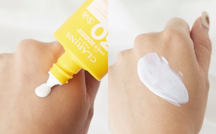 笔者最着重防晒的质感,一定要亲肤、够贴薄才会用,Clarins这款面部矿物防晒完全切合我的要求,白色乳液状质地没有一丝黏笠感,非常易涂开;初时涂上面时略有轻微乏白情况,但均匀涂开后大约静待30秒,你会发现防晒乳慢慢与肌肤融合,更有即时均匀肤色的效果,好神奇!
