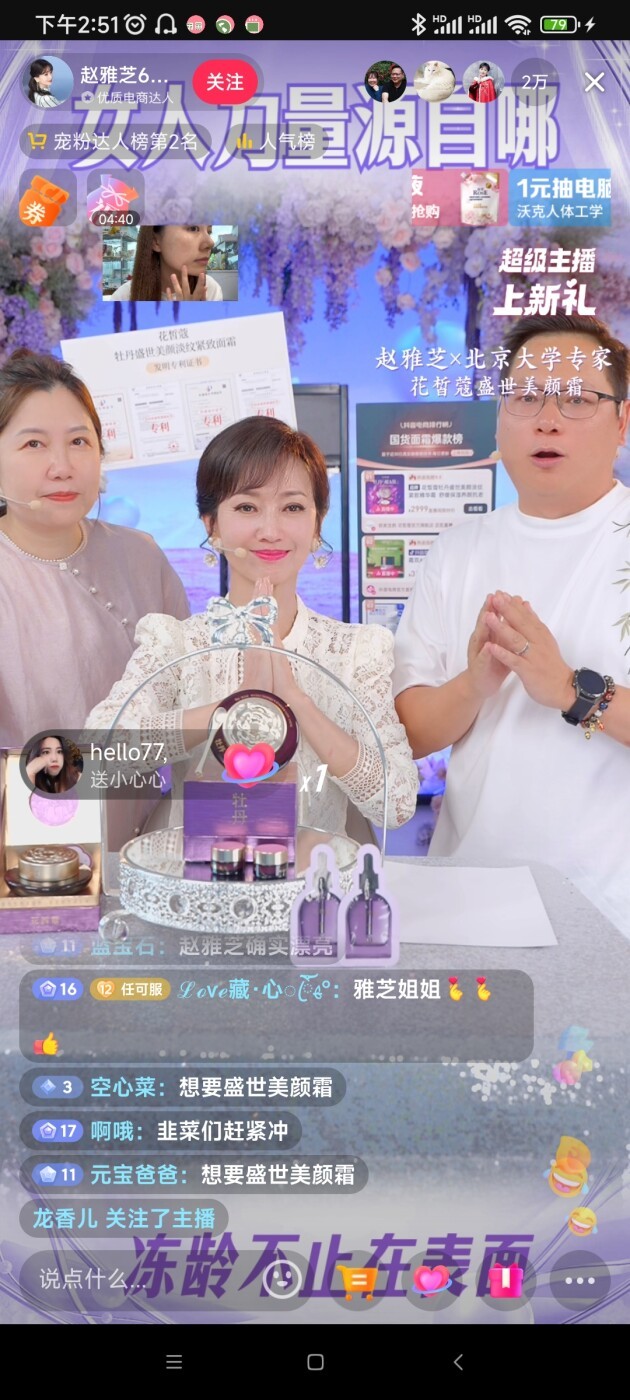 在长达1个小时的互动中,北大夫妇见证了赵雅芝抖音粉丝冲刺一千万、引领数十载盛名不衰的号召力;赵雅芝也向粉丝分享自己的“冻龄小秘诀”——花皙蔻“牡丹抗老盛世美颜霜”,可轻松消除法令纹、鱼尾纹和颈纹。同时,她也对这款产品的使用体验和抗老效果给予了客观点评。