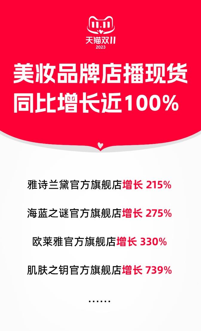 整体增长近100%!天猫双11美妆品牌店播全面开花