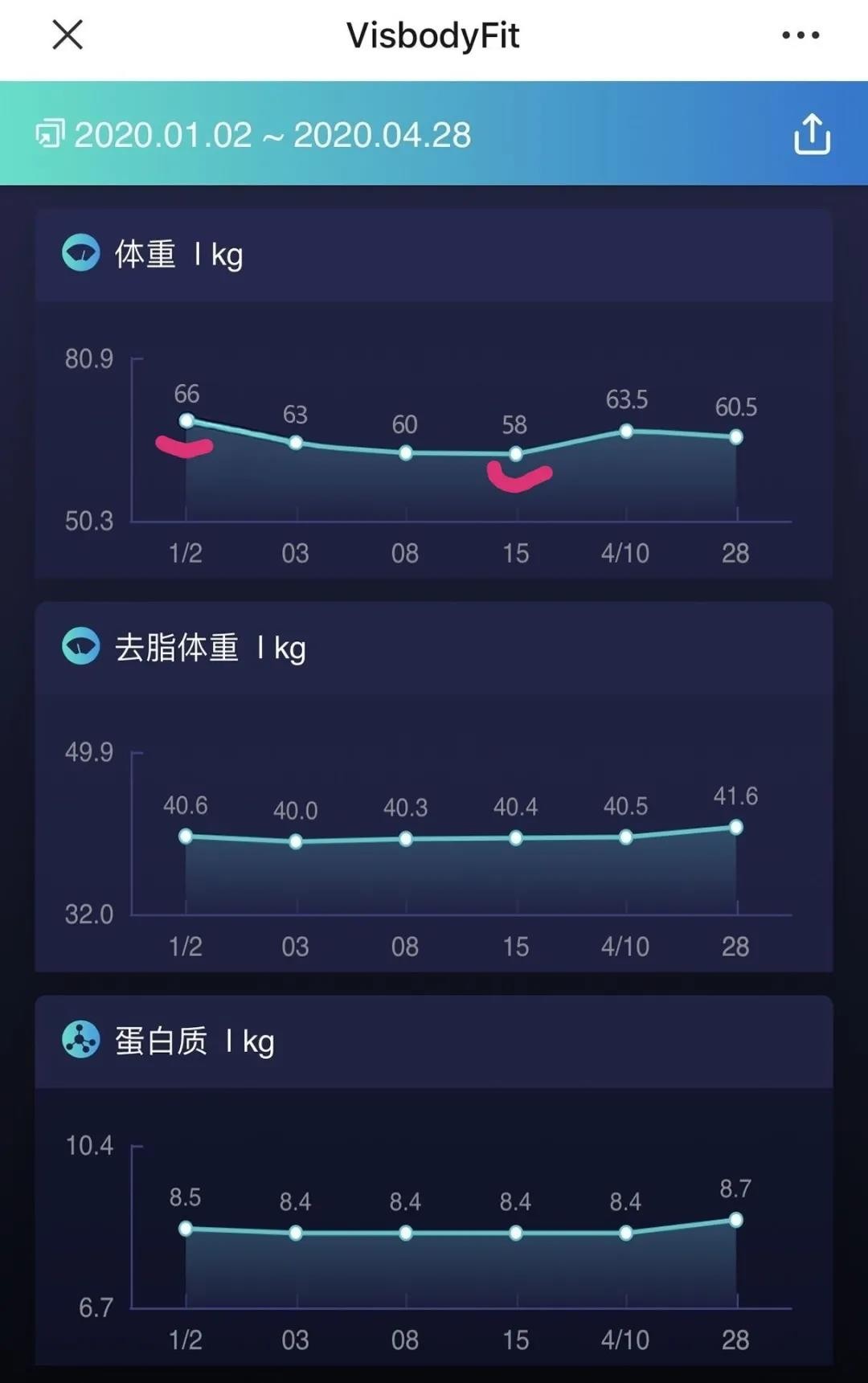 陈芳两个月以来的体重变化