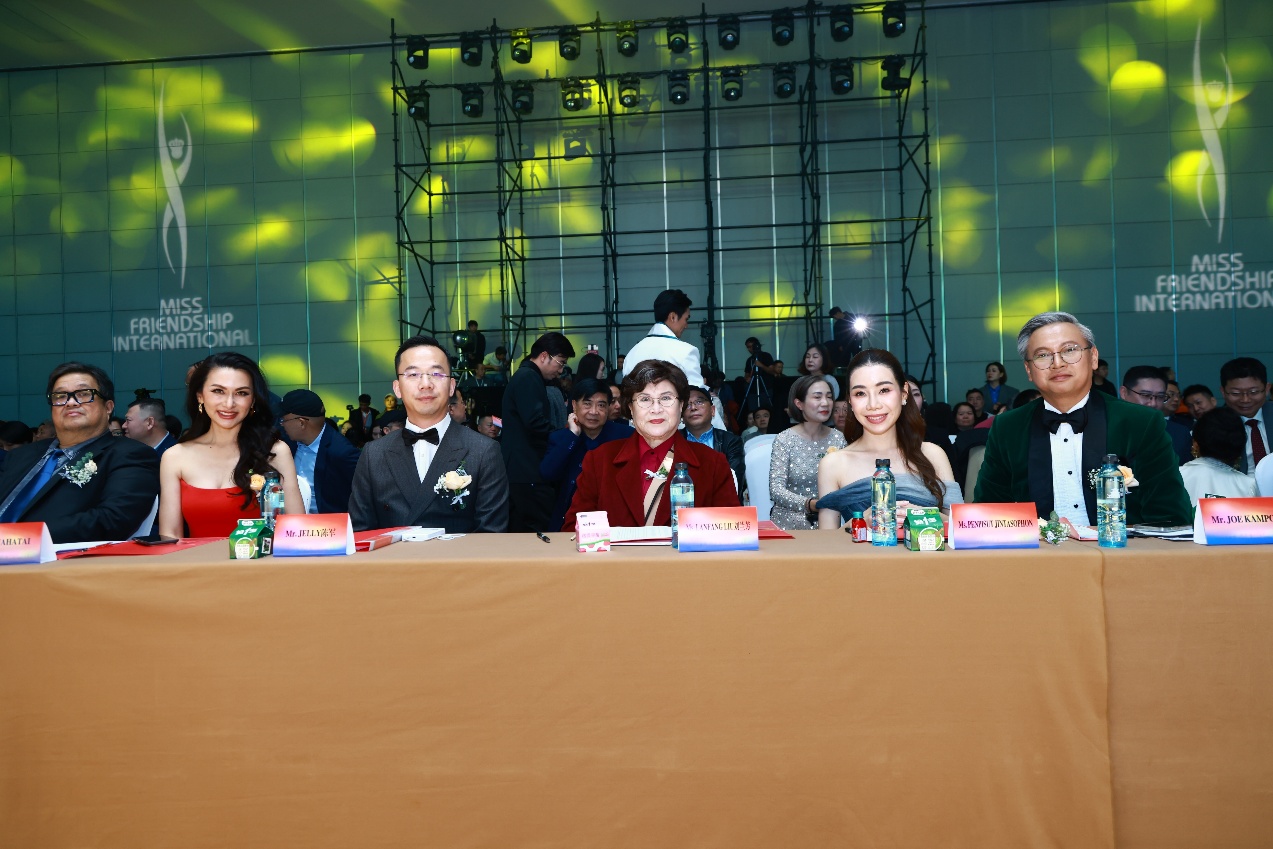 中国文联原副主席刘兰芳、国际友谊小姐组织主席陈军、总干事Nahatai、贵州省政协原副主席班程农、贵州省对外文化交流协会会长何京、泰国前旅游和体育部部长秘书彭皮苏∙金塔索蓬、贵州日报党委副书记总经理万群、贵州日报原社长赵宇飞、省外办原副主任王扬、市政协原副主席殷勤、贵商总会副会长孔祥柱及有关各国贵宾等出席并为获奖佳丽颁奖。