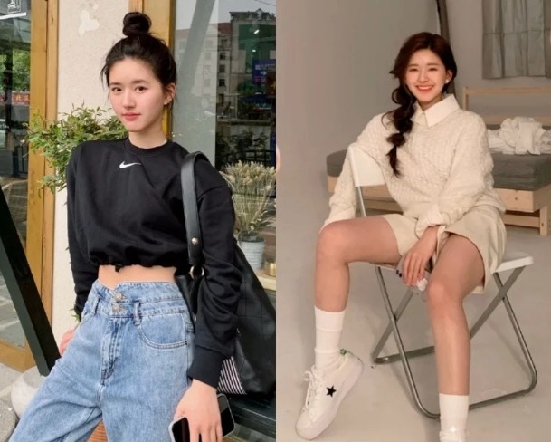 如果想要清爽一点的编发,高丸子头跟低马尾两种编法也很适合~都能在视觉上拉长脸部的长度,只要在鬓角、额角附近拉出自然的胎毛刘海,看起来就减龄又修饰脸型!