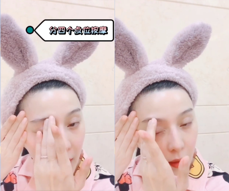 将用食指与中指并拢的力道,轻轻地按压攒竹(眉头)、鱼腰(眉中)、丝竹空(眉尾)、太阳穴点这4个穴位。范冰冰说:眼睛按摩的时间不要太长,大概每边5-8分钟即可,但是需要一个循序渐进的过程,每天都要做一次才能让眼睛呈现年轻的状态。
