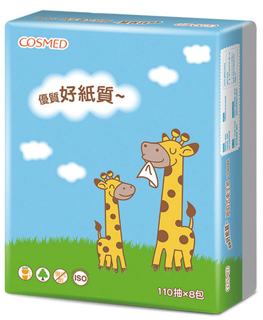 消费满额赠送COSMED 抽取式卫生纸(110抽8包)买一送一卷。