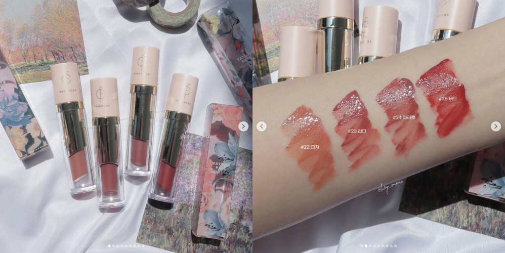 另外一个韩系品牌Forencos则是推出唇釉的系列,看起来是唇膏的设计,但实际使用是唇釉的系列,粉红色的包装看起来非常女孩感,主打的是丝绒感的唇釉材质,涂抹起来就像是绒布一样的质地,相当显色、饱和。