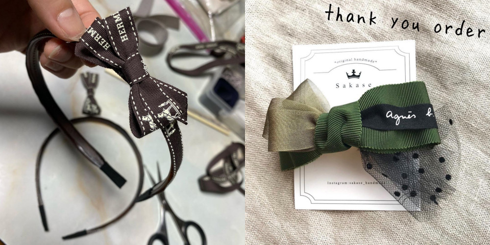 不只是制作成发带之类的单品,还有人会拿来制作成耳环,利用独特的扣子或是夹子,将缎带简短或是折叠,制造出近年非常流行多段带风耳环;或是利用夹子制作出颈链之类的作品,也有人把它缝在一般的包包或是化妆上,打造出就像是该品牌的设计,超级厉害。