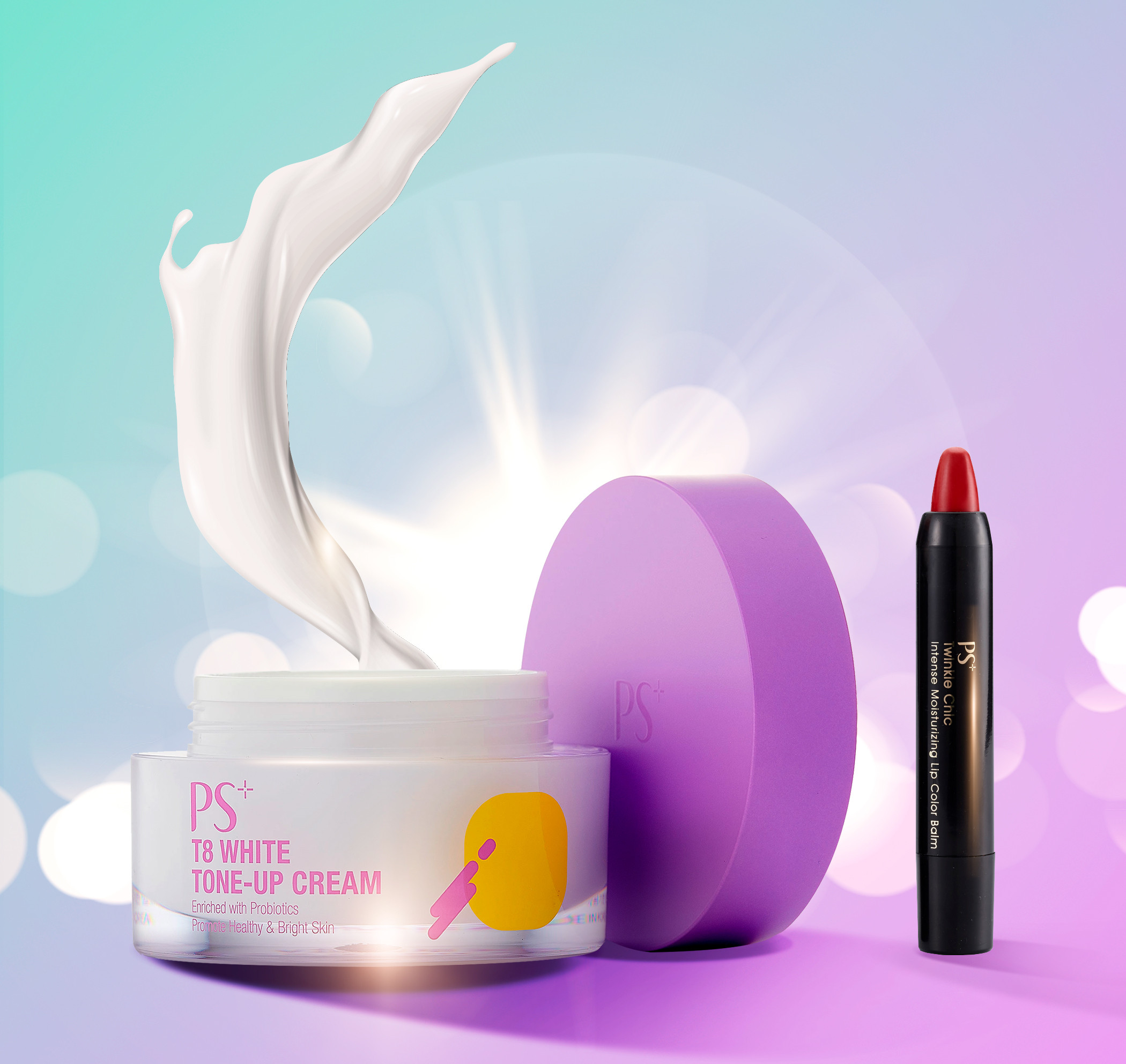 PS美美妍素颜修修光圈霜,除了添加独家益生菌复合物,更拥有8种超级柑橘莓果成分,帮你做到一整天的亮白修护。买PS美美妍素颜修修光圈霜50ml,送嘟唇修修丰嫩显色唇笔(法式红唇)