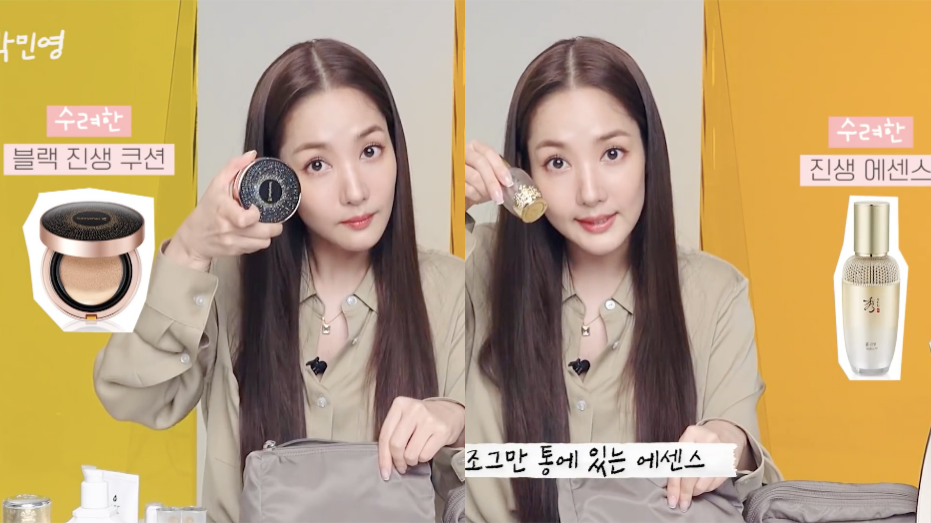 身为美妆品牌秀雅韩(Sooryehan)的代言人,朴敏英本人也相当尽责且捧场,身上一定会带著一片美白面膜、气垫粉饼以及随身瓶精华液。
