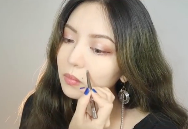 将上唇边缘晕开+人中最上方打阴影,就能让人中看起来变短,更减龄