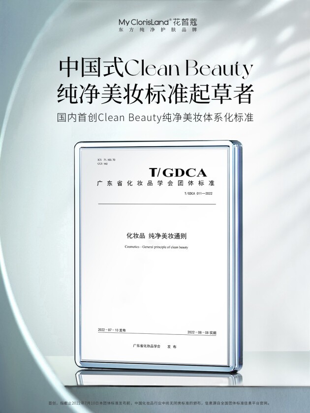 让行业与用户建立「CLEAN BEAUTY纯净美妆」的“标准观”,东方纯净护肤品牌——MCL花皙蔻义无反顾地站了出来,以深耕纯净护肤领域十一年的专业资历,结合品牌优势牵头制定了「CLEAN BEAUTY纯净美妆团体标准」,并于2022年7月由广东省化妆品学会发布实施,同时由广东省民政厅发证认定(标号T/GDCA011-2022),是国内首份获得官方认证的「CLEAN BEAUTY纯净美妆」标准(以下简称团标)。从此,行业正式迈入有标可依的全新纯净时代。