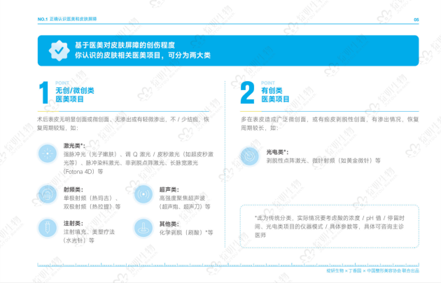 基于医美对皮肤屏障的创伤程度,《指南》将医美分为无创/微创类医美项目和有创类项目两大类。