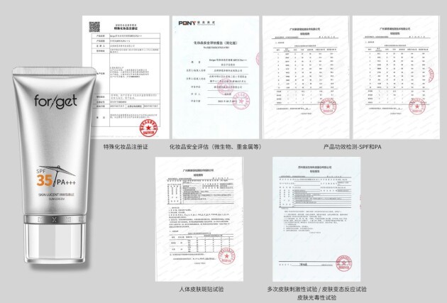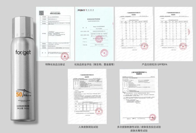 for/get银翼防护系列的两款防晒产品,均属于特殊化妆品,一物一证,严格遵循国家法规要求,通过层层检测,才走向市场。
