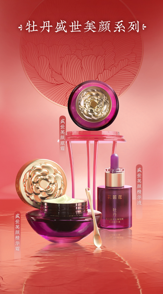 除了迅速见效的精华液,牡丹盛世美颜面霜也终于在千呼万唤中上播。与精华油不同的是,面霜具有封闭保养性能,尤其是在秋冬季节面霜可以锁住水分和精华,同时形成屏障避免肌肤收到伤害。正所谓:先防护,再抗老,同时面霜也是所有大牌的标志性产品,映射品牌的研发实力,而牡丹盛世美颜面霜便是花皙蔻的王牌产品,代表着北大夫妇二十多年来的心血之大成,也代表着花皙蔻在抗老护肤领域打造的天花板。