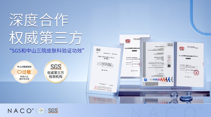 NACO深度合作权威第三方SGS和中山三院皮肤科有效——第三方SGS权威验证显著有效