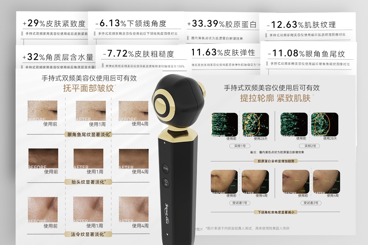 在讲究高效的时代,即使是家用美容仪器,求美者也同样看重仪器的专业性、精准性和有效性,熙倍睿手持式双频美容仪为保证产品的有效性和安全性,采用真人实测方式,多维验证功效,精准「狙击」多种肌肤问题,为紧致抗衰「加码」。