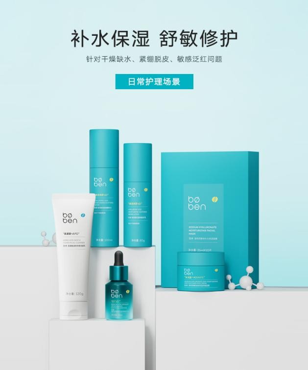 泊本创新了产品开发体系,坚持最高标准的温和与安全,同时注重使用体验的领先性。在日常护理方面,泊本推出了6D玻尿酸水乳和姜黄素水乳,这两款产品可针对不同肤质的敏感肌肤提供长效保湿与舒缓效果。此外,泊本的肌底精华液、保湿霜和面膜等产品,也能为肌肤提供全面的日常保养。