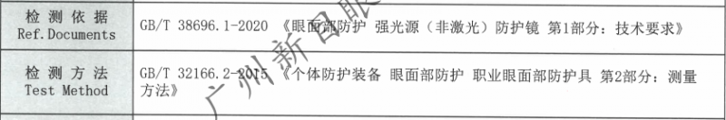 IPL防护眼镜不是以OD值衡量,他划分为6个特性编号,分别为F1-F6,执行标准:GB38696-2020