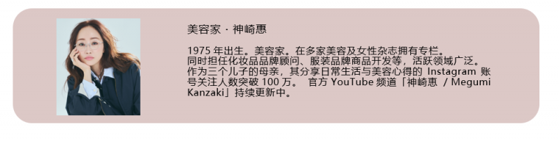 美容专家神崎惠女士凭借丰富的美容知识和独特的独家美学,深受各年龄段女性的支持。她在书籍、杂志、社交媒体等多个领域活跃,其专业的提案能力和传播力始终备受瞩目。