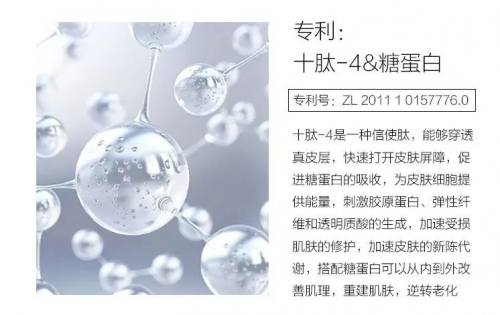 十肽-4+糖蛋白是凯缇蔻极光冻龄焕肤精华液的专利成分,也是蓝铜胜肽的绝佳搭档,二者一起搭配可以从内到外改善肌理,重建肌肤,逆转老化。