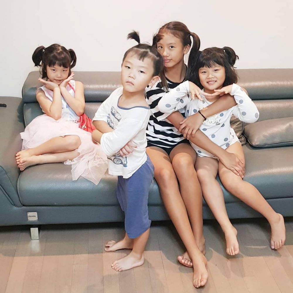 无论在镜头前后,在诗和在雅都很照顾弟妹,特别面对是调皮的雪雅秀雅,她们都十分温柔有耐性~加上平日在诗在雅都有和爸爸一起做运动,还很擅于网球,相信过几年必定是满满才艺的小明星,网友都表示希望可以多点在镜头前看到他们一家五口!