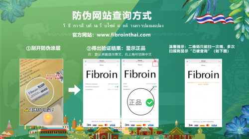 “我们完成新升级后做的包装,增加了产品防伪功能,以及官方网站查询,建立了从泰国工厂到中国海关的全程溯源系统”菲必丽(Fibroin)中国运营中心总监Mr.Zhou表示。